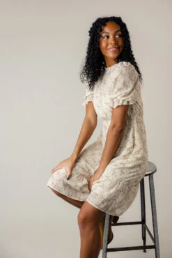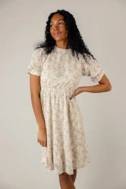 This dress boasts graceful puff sleeves and a chic ruffled mock neck, offering a touch of sophistication to your look. With its charming floral pattern and feminine ruffle hem, it exudes timeless beauty and grace. Perfect for any occasion, from brunch dates to garden parties, this knee-length dress is sure to turn heads and make you feel fabulous.