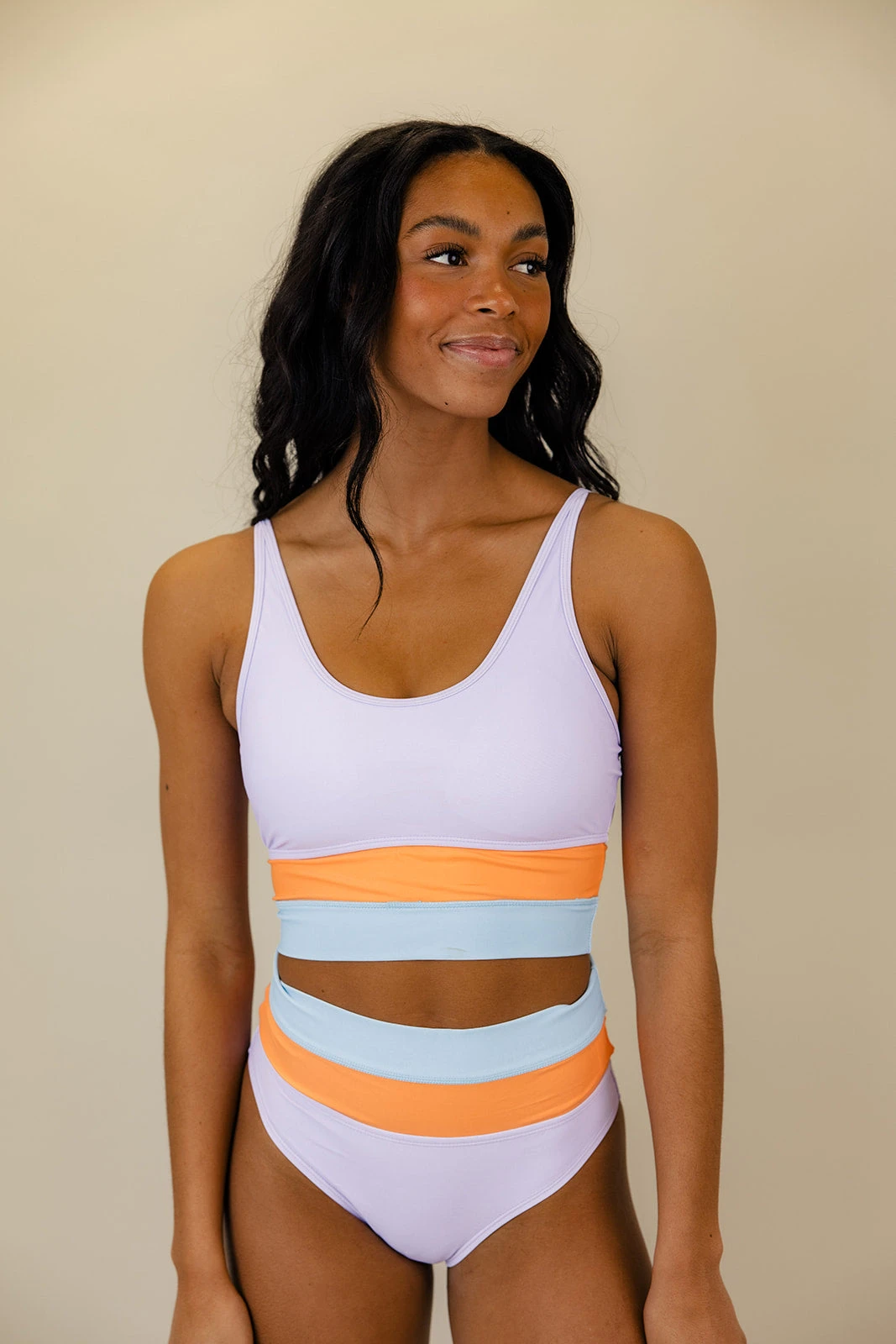 It’s not just a want; it’s a need!! Make a statement with the Sunset Sail Bikini Top, featuring a scoop neck and adjustable straps for achieving the perfect fit. Whether you’re soaking up the sun or catching waves, this swim top is your go-to for the perfect beach day. Pair with the matching bottoms!