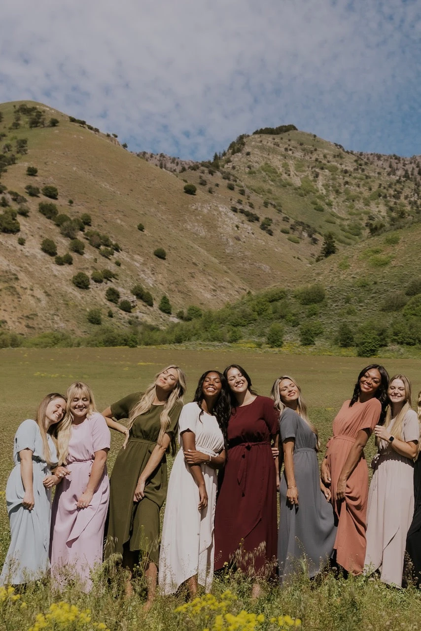 The Taylor Jane is sure to keep you trendy + comfortable during any season! Designed with a gathered elastic waist, a working tie, combined with short, cuffed sleeves, + a round neckline with a keyhole buttoned closed in the back. The Taylor Jane would be a beautiful everyday dress or a stunning dress for a special event. The combination of modest, elegance, comfort, + class will have you turning to this wrap maxi dress for all occasions + anything in between!