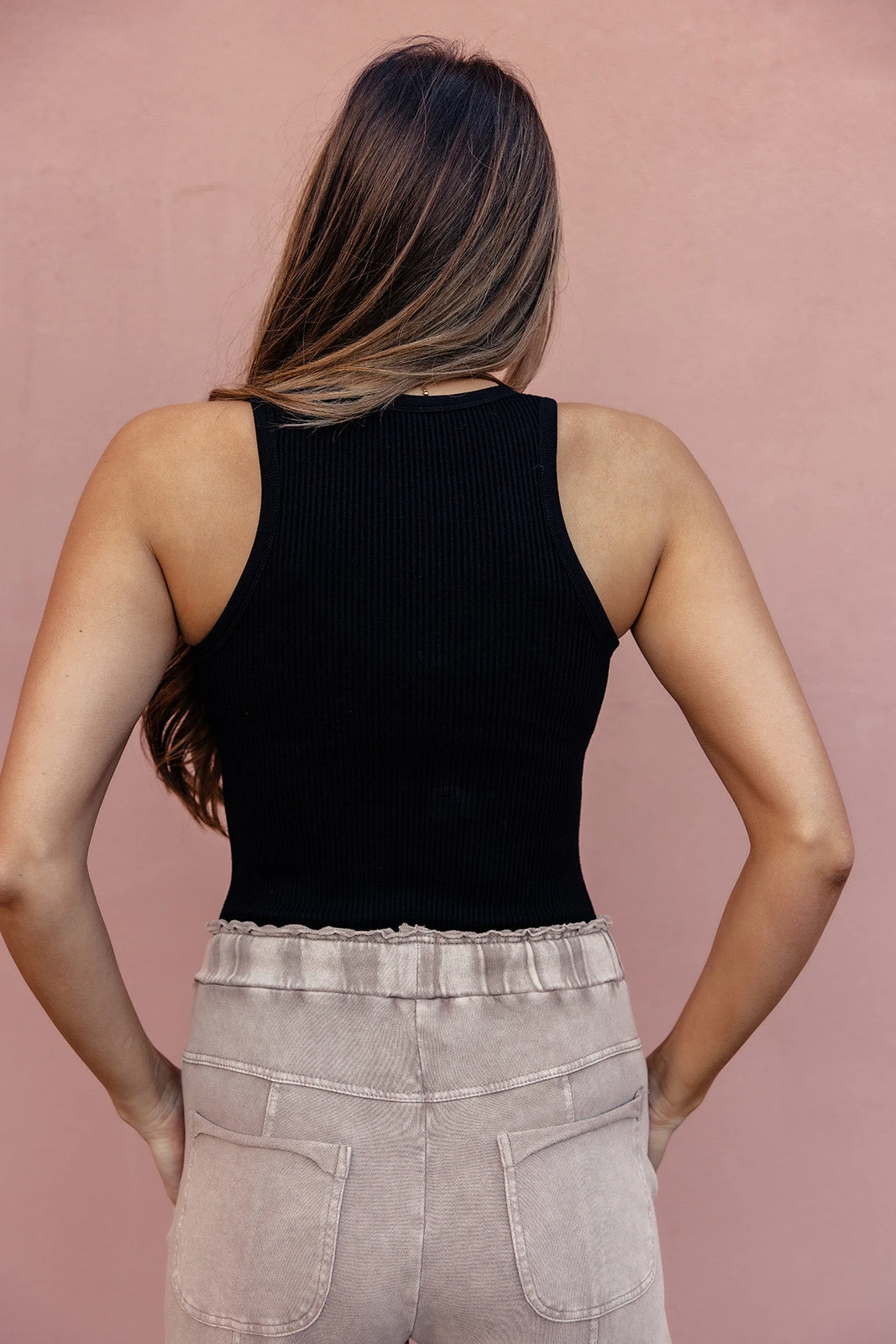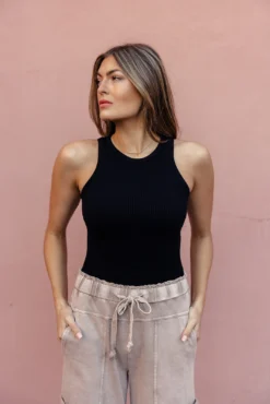 This tank bodysuit is the epitome of versatile. Crafted from stretchy ribbed fabric, this piece can be worn under rompers, skirts, jeans – you name it! Hurry and snag one before they sell out!