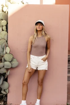 sienna // paired with the levi’s 501 high rise denim shorts in white + slow morning club canvas trucker hat