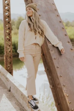 Every woman needs a neutral pair of pants in her wardrobe + The Archie Pants make that perfect addition. With a subtle flare leg, raw seam, + gorgeous color, these pants are absolutely stunning. Effortlessly pair these pants with a top and your favorite sneakers for the cutest spring look.