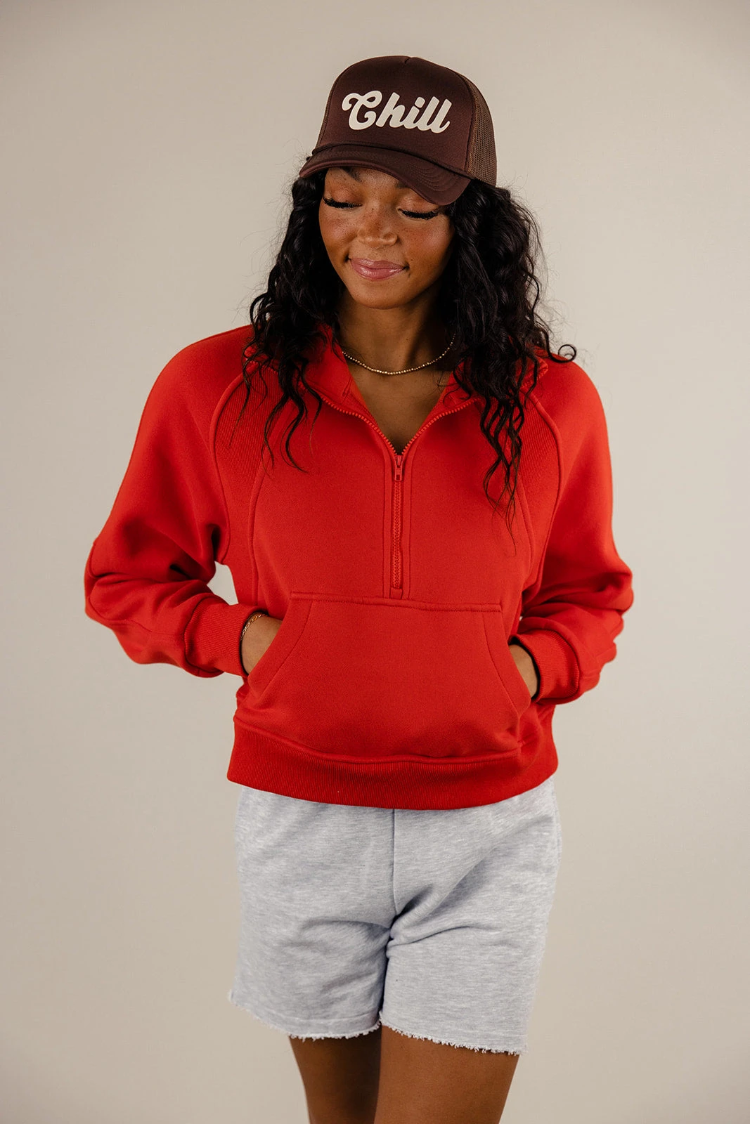 tomato // paired with the chill foam trucker hat, burn for you cargo pants in tan, + cool girl combat boots in peru