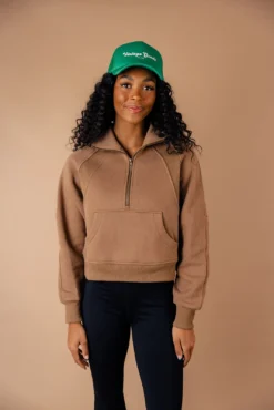 This half zip features ribbed patchwork detailing and is slightly cropped. The Atley is super soft and great for your commute to the gym or a cozy day in with the kids. We can’t wait to see how you style this pullover!