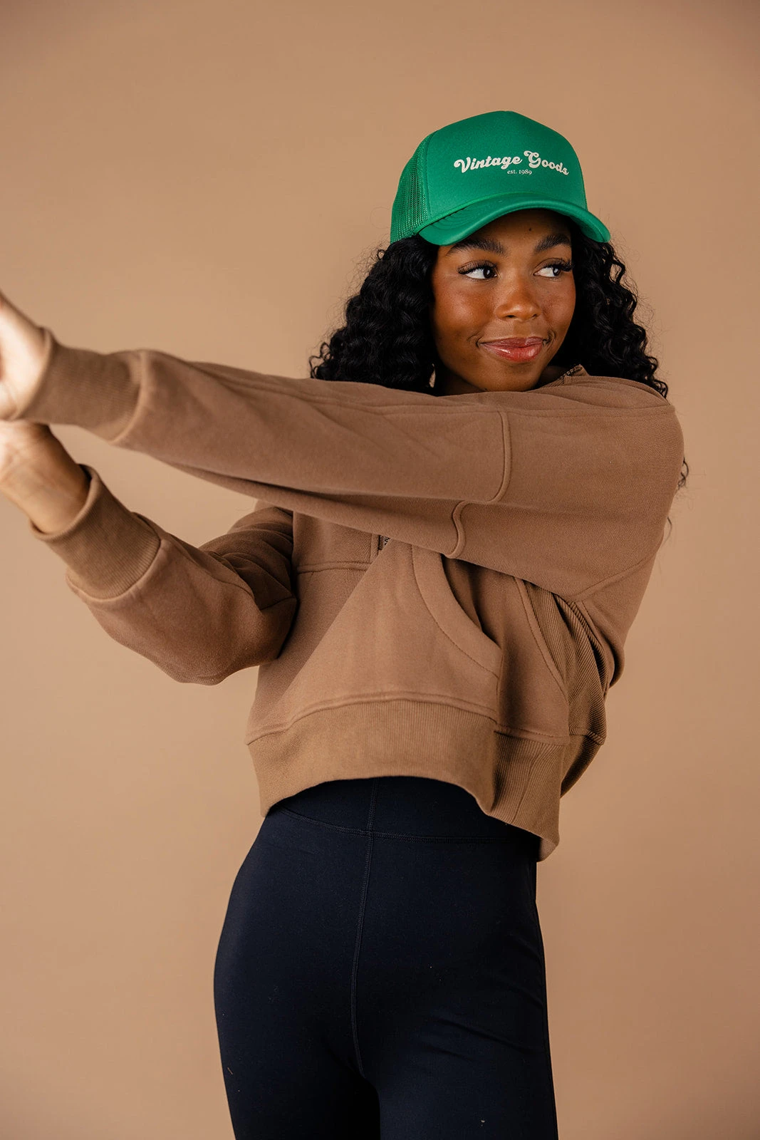 sienna // paired with the vintage goods foam trucker hat + the amren flare leg jumpsuit in black