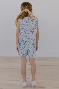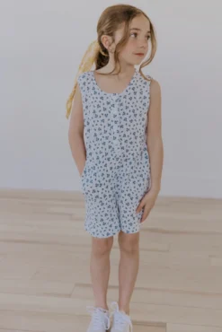 You can put your magic asparagus away, this romper is for real life ๐ This romper is for those days when your little one has to be the bravest theyโve ever been. For the busy days running errands, days at grandma’s, and everything in between. Featuring dainty blue floral material, Henley button style, and tank sleeves. Wear her on your own with sandals or pair her with cardigans and sneakers to give your little one the confidence she needs to complete the day.