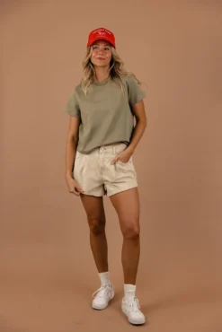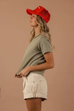 The Emre Tee is a simple dream. Featuring a slightly cropped boxy fit, this tee is not only flattering but it’s perfect paired with shorts, jeans, and your favorite overalls.