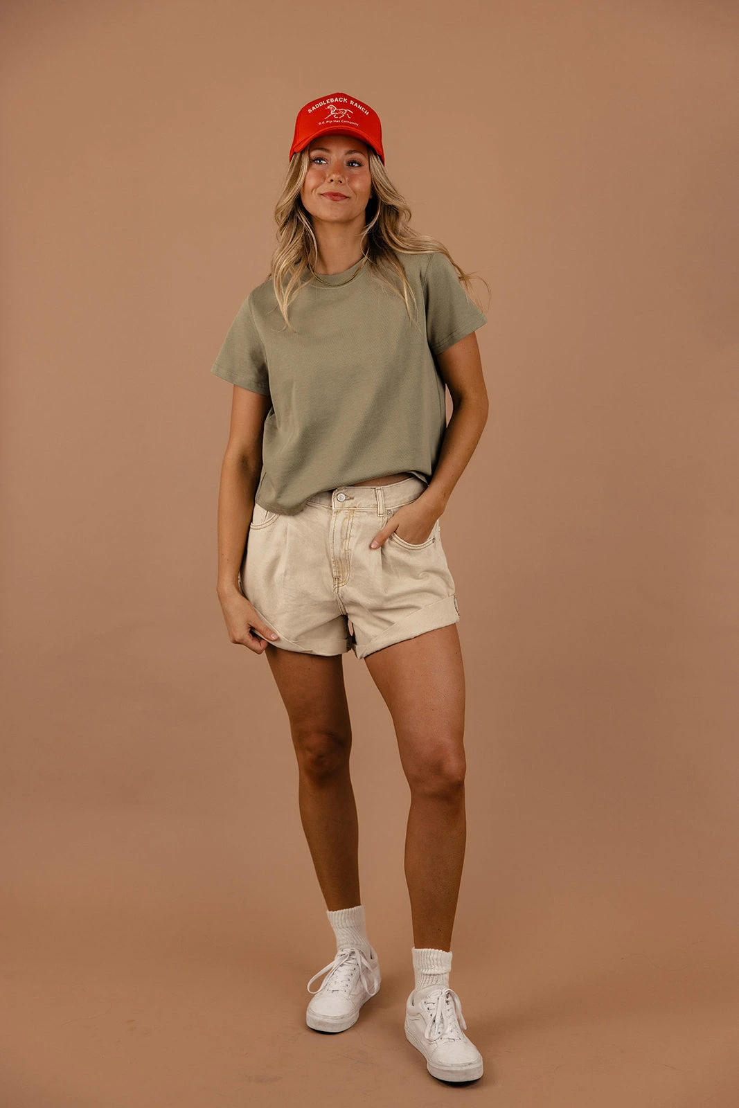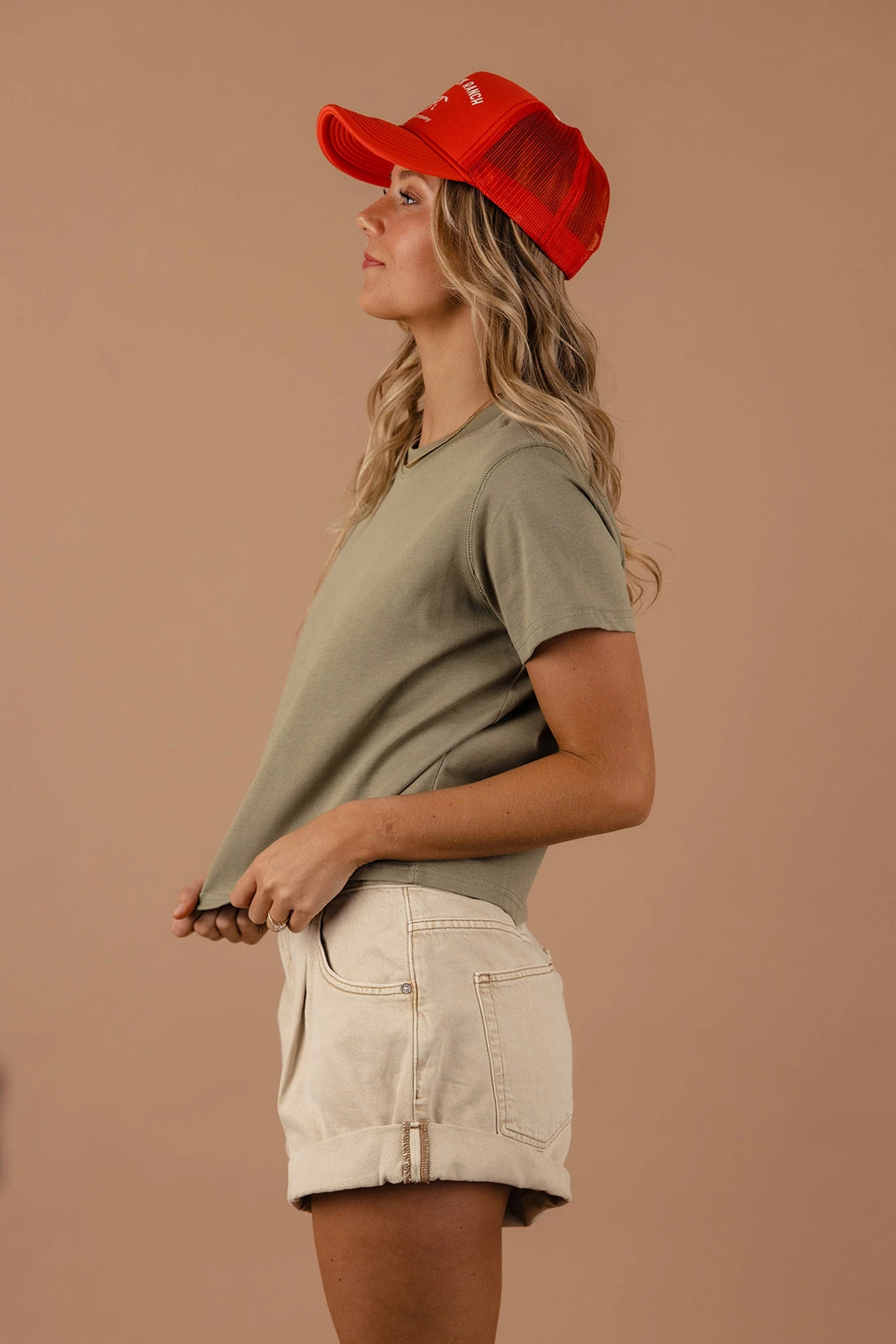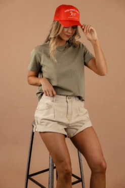 // paired with the saddleback ranch foam trucker hat + free people danni shorts