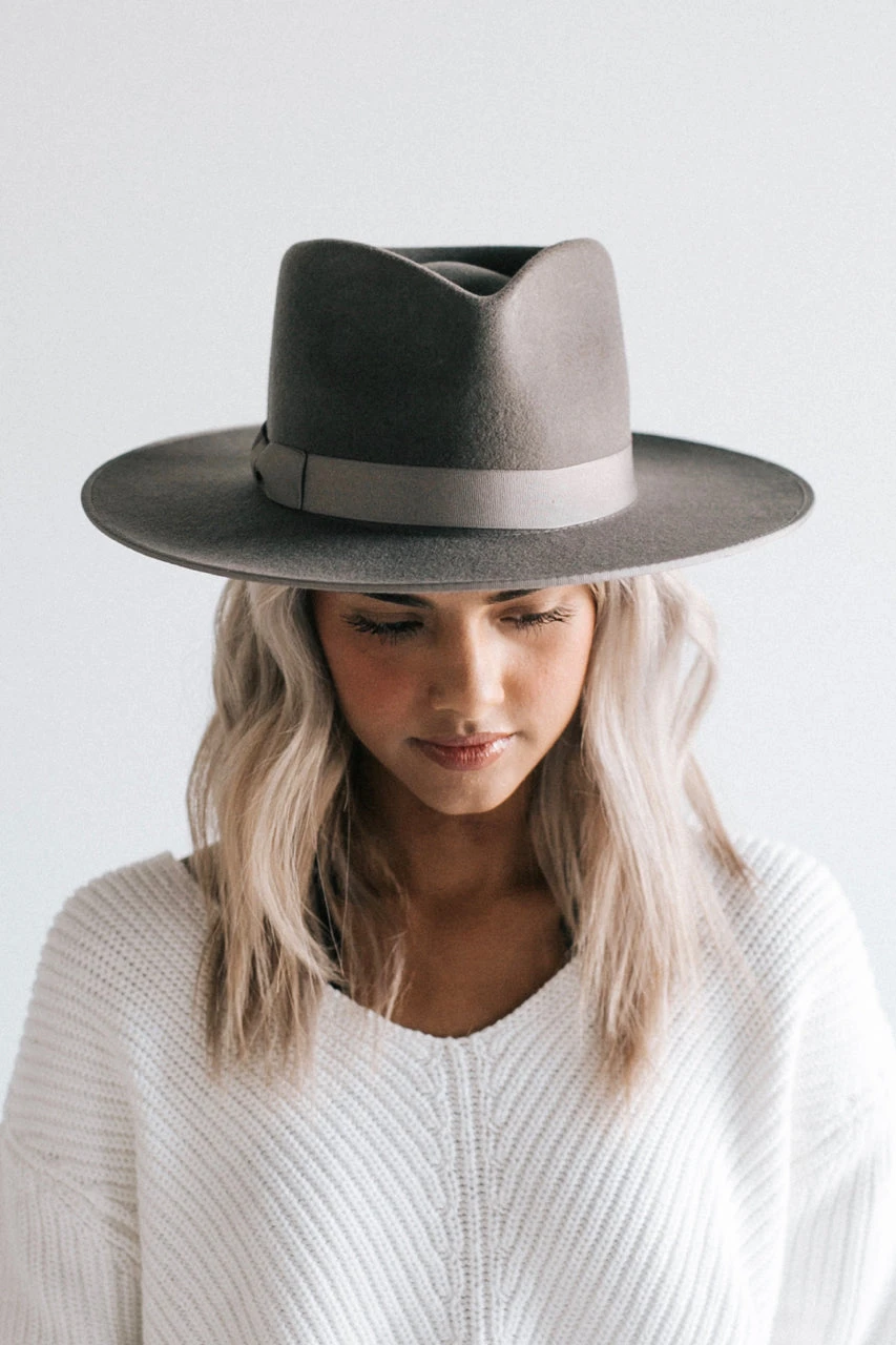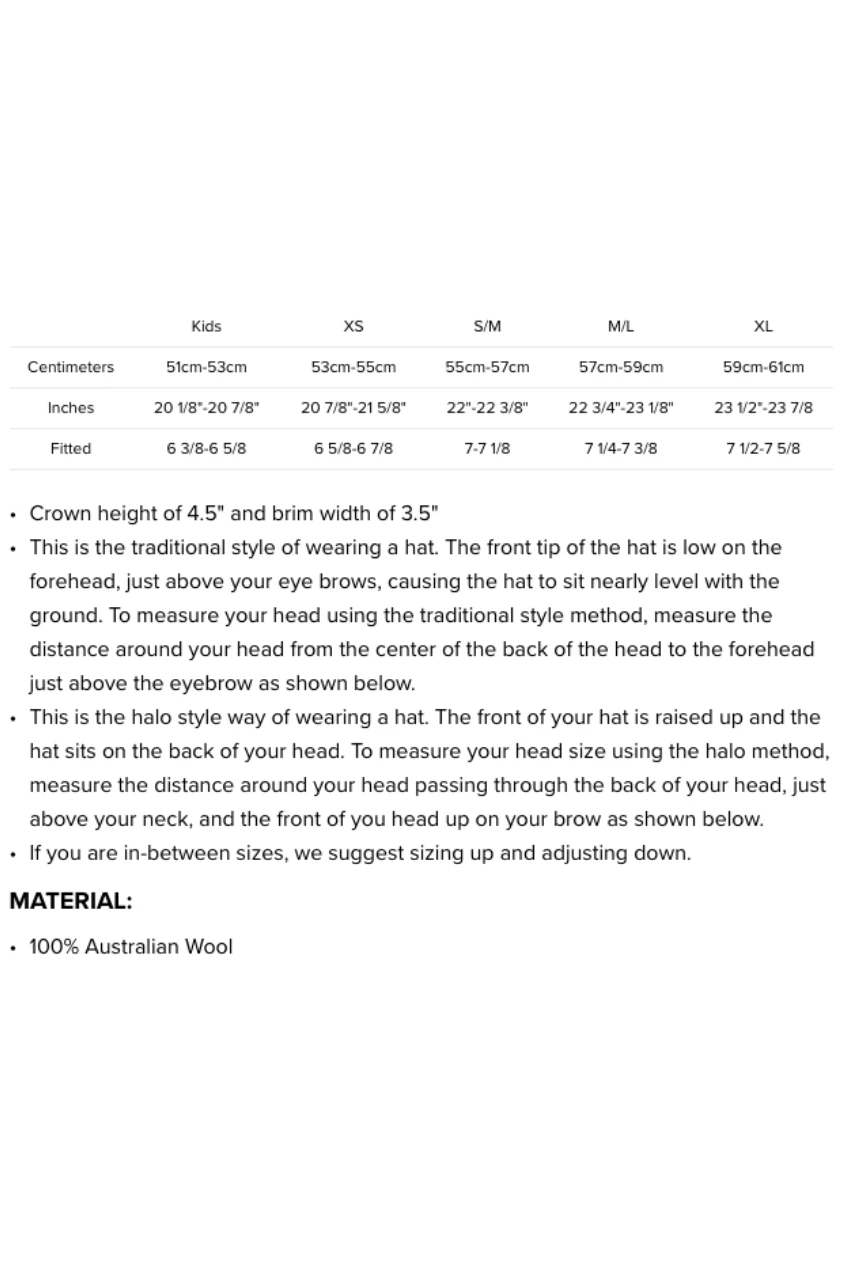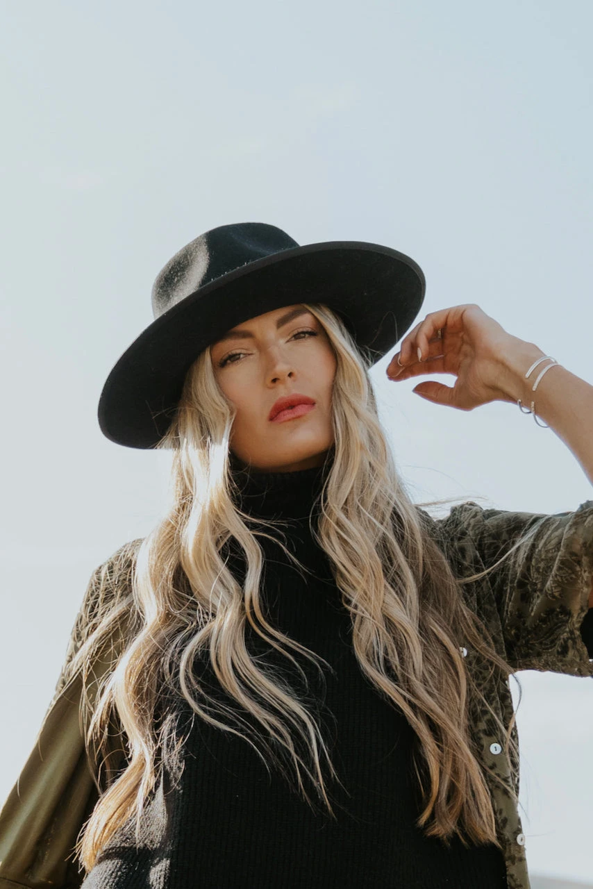 The hat that looks good with literally everything (which is why it’s in almost all our photoshoots) and we can’t get enough of it! Made with stiffened wool, Monroe is a bold statement piece with a classic fedora style. This rancher style hat’s brim and crown are trimmed with tonal grosgrain ribbon and a slightly curled up brim.