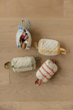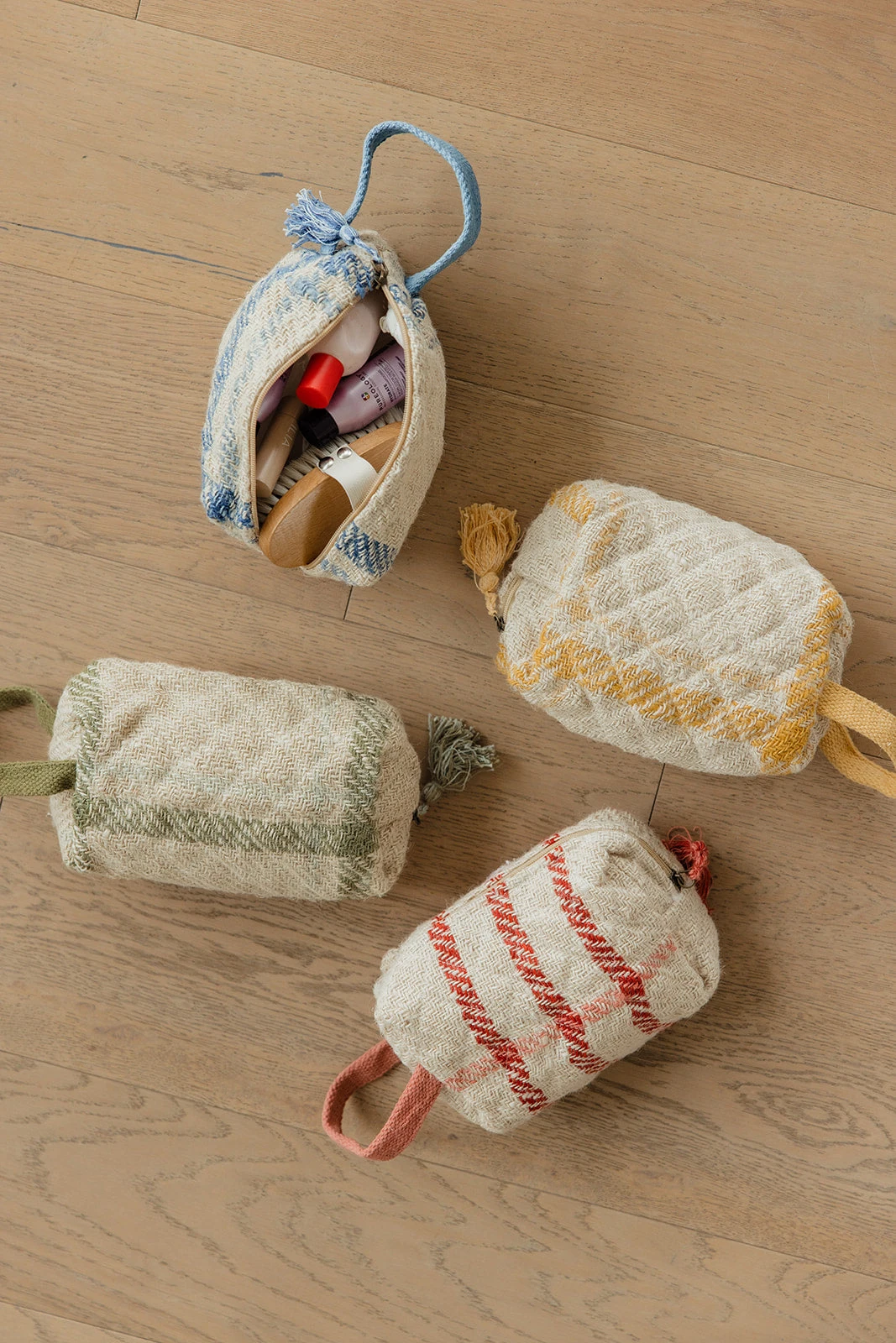 This adorable pouch, with its quilted design, convenient handle, and playful tassel, is as charming as it is practical. Perfectly sized for your toiletries during travels or as a keepsake holder for makeup and/or treasures, this pouch is a must-have.