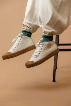 I’ve been counting down the minutes for these to arrive. And I’m happy to report—it was worth the wait. The Novaboot is a high-top canvas shoe with a rubber sole + toe. These sneakers feature an old-school classic look and come in two colorways. You’ll want to grab a pair of these because they won’t last long at all!