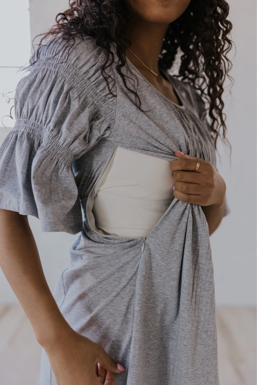 Cheers to your new favorite dress (which can be worn year-round). Bell sleeves that make a statement and we are here for it. With nursing-friendly zippers on both sides, this dress was made with mamas in mind.