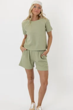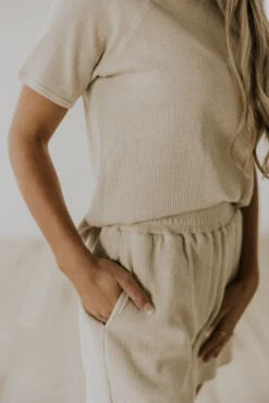 The Peggy Shorts feature an elastic waistband, pockets, and the perfect ribbed material. Mix and match or keep it simple, these shorts are perfectly paired with the matching tee! This is a simple and classic set to add to your wardrobe.