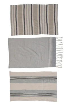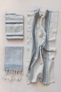 I think we are both seeing our new favorite kitchen accessory. Featuring a set of three woven cotton towels in three different striped styles. Give your kitchen a nice spring refresh or introduce a nautical theme for the coming summer. Grab a set or two for upcoming spring weddings or bridal showers + wow the bride to be. There will always be messes, so no need to justify getting another darling kitchen towel set 🙂