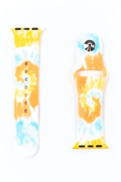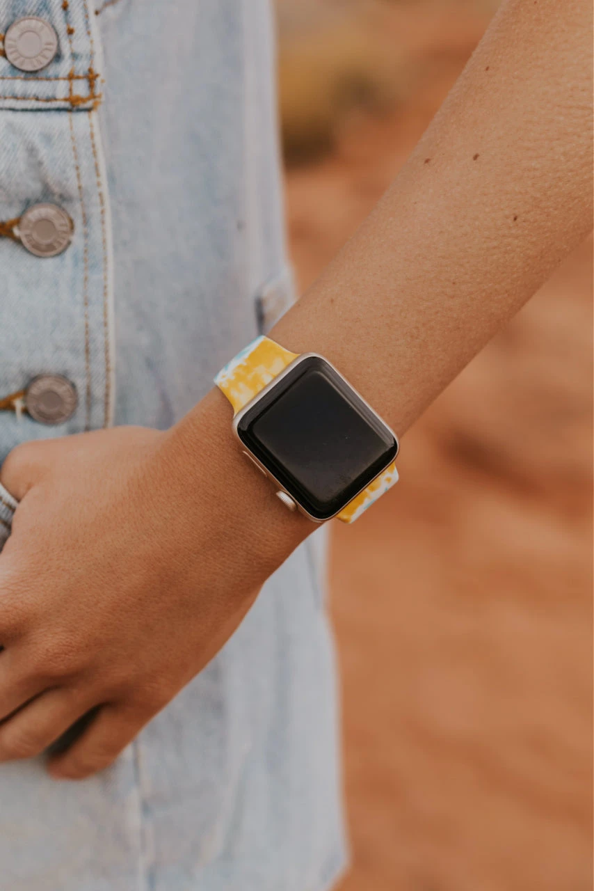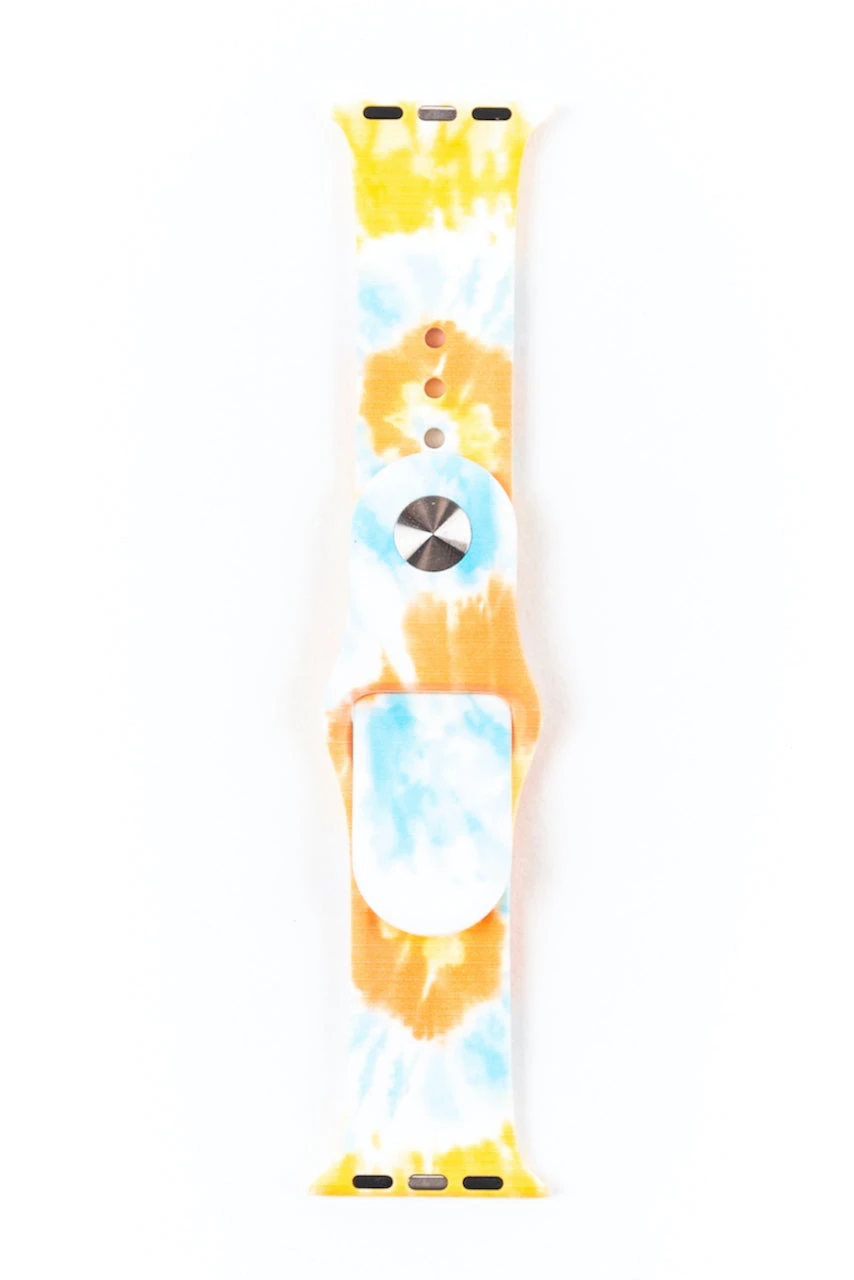 For the hippie in you! Spice up your Apple Watch with this fun and colorful tie-dye watch band! With swirls of blue, orange, + yellow, this watch band is sure to brighten any cloudy day! Stack some fun and cute bracelets along with this band and you surely will catch the eye of every passerby!