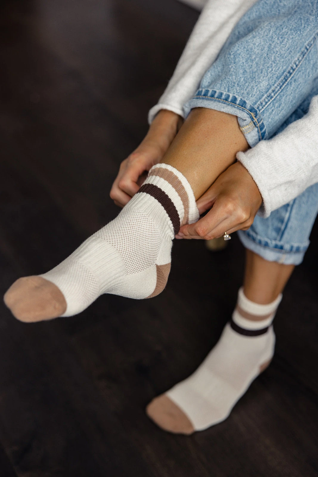 Cozy up with these neutral socks! They feature arch support, and ribbed material, and look oh-so cute with boots and sneakers. These will be in your sock drawer for the long haul!