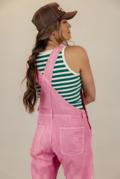 // paired with the free people ziggy denim overalls in hotpink + roolee kaori sport sandals in burlywood
