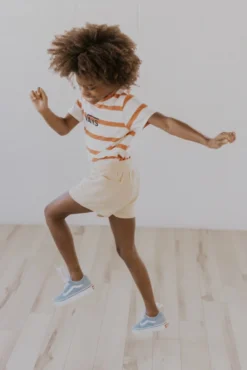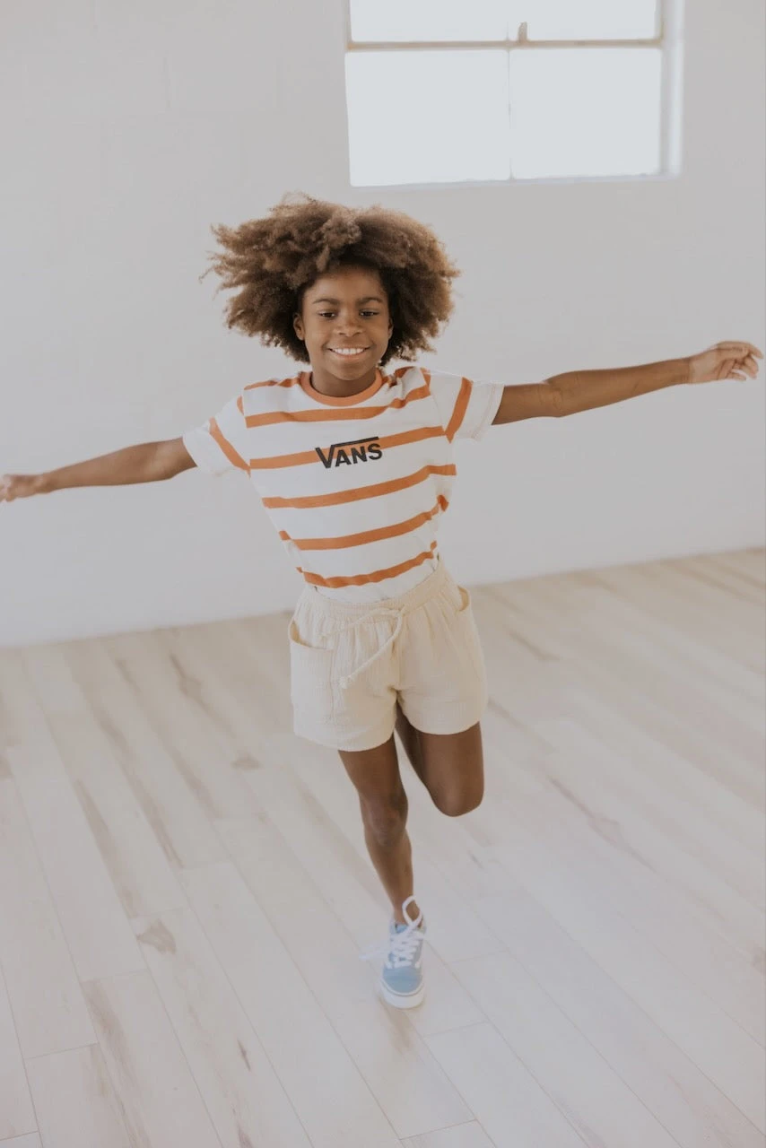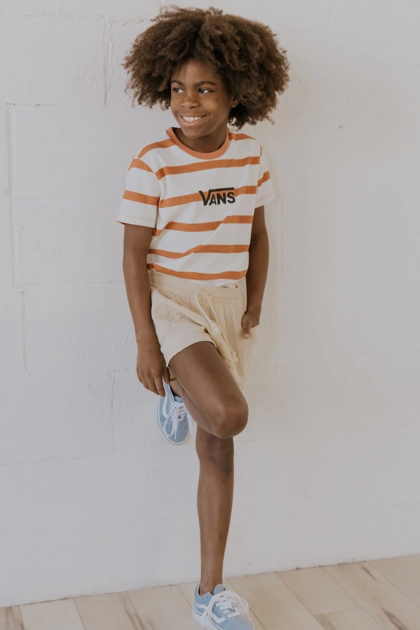 For school days and summer days, vans will always be there. We especially are big fans of simple striped tees. Perfectly paired with denim, shorts, + a pair of old-school vans of course. Make sure to tag us when your little one sports this fabulous tee.