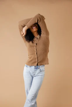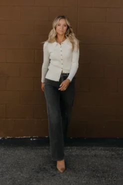 Featuring functional buttons and a classic collar for a timeless look, this shirt is a wardrobe essential. Crafted from a stretchy knit material, it offers a snug and fitted silhouette that moves with you throughout the day. Available in two versatile colors, making it easy to mix and match with your wardrobe.