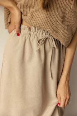 We’re positive this skirt will be your new fave. It’s got this super comfy elastic waist with a cute drawstring to make it fit just right. The hemlines are all layered and raw, giving it a fun and playful look. And let’s not forget the fabric – it’s woven to perfection in the most dreamy neutral shade that goes with everything! Dress it up or down; the world is your oyster with this one!!